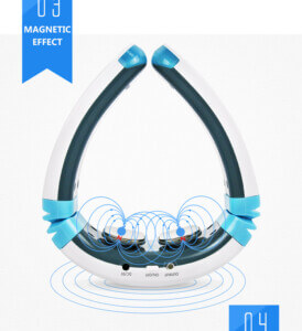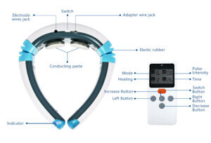 See kaela massaažiseade on uue põlvkonna kodumajapidamises kasutatav multifunktsionaalne seade, mis põhineb füüsika, moodsa mikroelektroonika ja pikaaegsetel hiina meditsiini kliinilistel tavadel. See kasutab madalsagedusel töötavat elektroteraapiat mis tekitab lihastes ringveovibratsiooni valu leevendamiseks. Seadmega saab leevendada seotud valu ja ravida valutavaid lihaseid nii õlas, vööl, kaelal, seljal, käsivarrel ja jalgades. Kaelaseadet kasutatakse kaelal, see on ergonoomiline ja oma ehituselt sujuva rõngaskonstruktsiooniga mille füsioloogiline kumerus on kooskõlas inimese kaelaga.